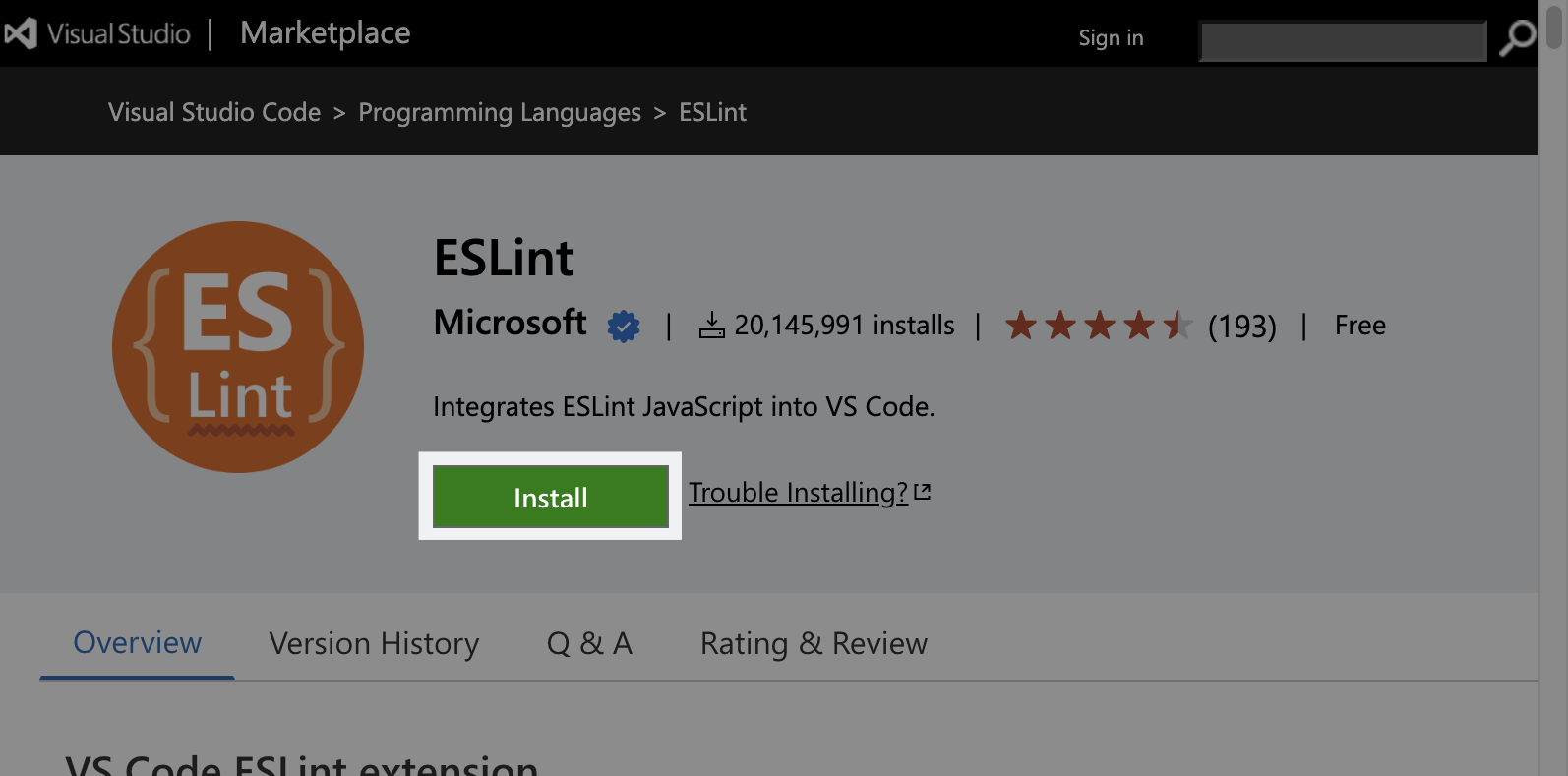 VS CodeとESLintを統合するには、ESLintの拡張をVisual Studio Codeのマーケットプレイスからインストールするだけです。